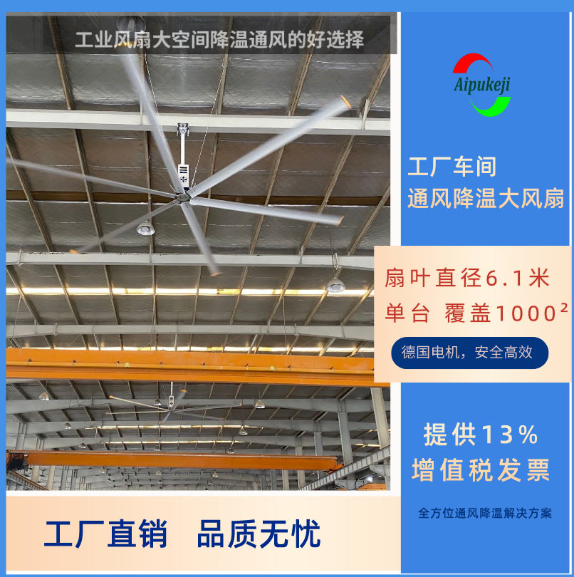 風(fēng)逸系列風(fēng)扇直徑可達(dá)6.1m(20ft),可應(yīng)用于工業(yè)廠房、車間流水線、物流倉儲、健身房、體育館、籃球館等諸多場所。整機(jī)專利設(shè)計(jì),采用最新研發(fā)機(jī)翼型扇葉,輸出大而穩(wěn)定的風(fēng)量。輕便靈活移動,可隨時(shí)隨地為您提供完美的通風(fēng)降溫服務(wù)。
